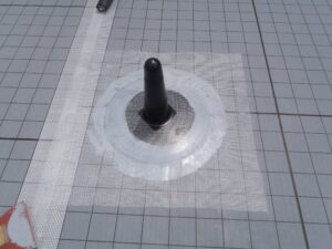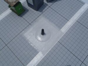 脱気筒周りもシートをはり、ウレタン防水材でしっかりと防水処理を施しています。