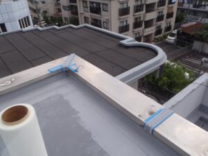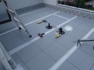 そのため、今回はウレタン防水の通気緩衝工法を採用し、防水層内部の湿気を逃がしながら耐久性を高める施工を行います。