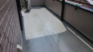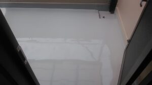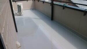 2階ベランダは既存が塩ビシートのため、こちらは上からウレタン防水を施します。