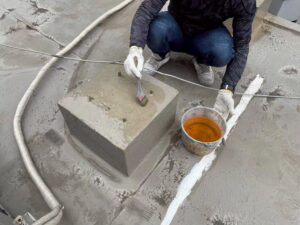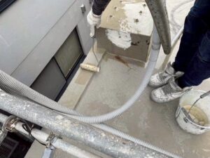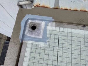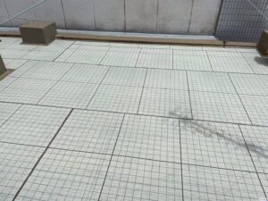 今回は、既存防水層を活かしながら、ウレタン防水の通気緩衝工法にて防水改修工事を行わせて頂きます。
