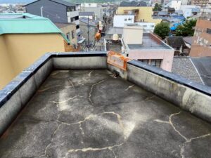 部分補修では再発の可能性が高いため、今回は屋上全体の防水改修工事をご提案いたしました。