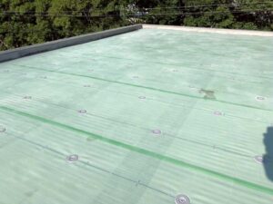 塩ビシート防水(機械固定工法)は改修工事に適した工法で、下地の影響を受けにくく安定した防水性能を確保できます。