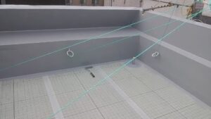 また、施工中は吊かんや輪っかなどの金物を取り外さず、ひもで固定して防水層に接触しないよう工夫しながら作業を行いました。