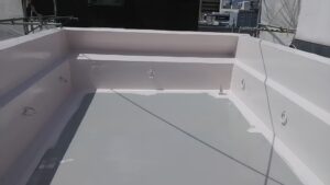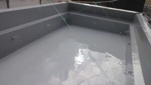 ダイフレックス製のウレタン防水材を用いて、規定の厚みを確保しながら塗膜防水を施工しました。