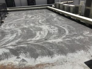 こちらもともとウレタン防水を施されていましたが、劣化が酷く、表面が剥がれており、ひび割れも多数できていました。
