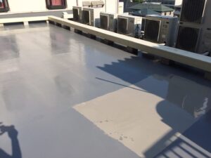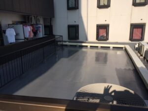 マンションの下屋のウレタン防水が劣化しているとのことでしたので、通気緩衝工法でウレタン防水を施工させていただきました。