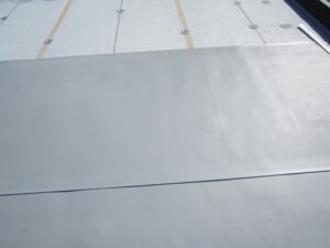 今回は既存がゴムシート防水でしたが、劣化が進んでいたため、耐久性・将来性を考慮して塩ビシート防水(機械固定工法)をご提案しました。この工法は下地の動きにも強く、広い屋根面積でも安定した防水性能を発揮します。